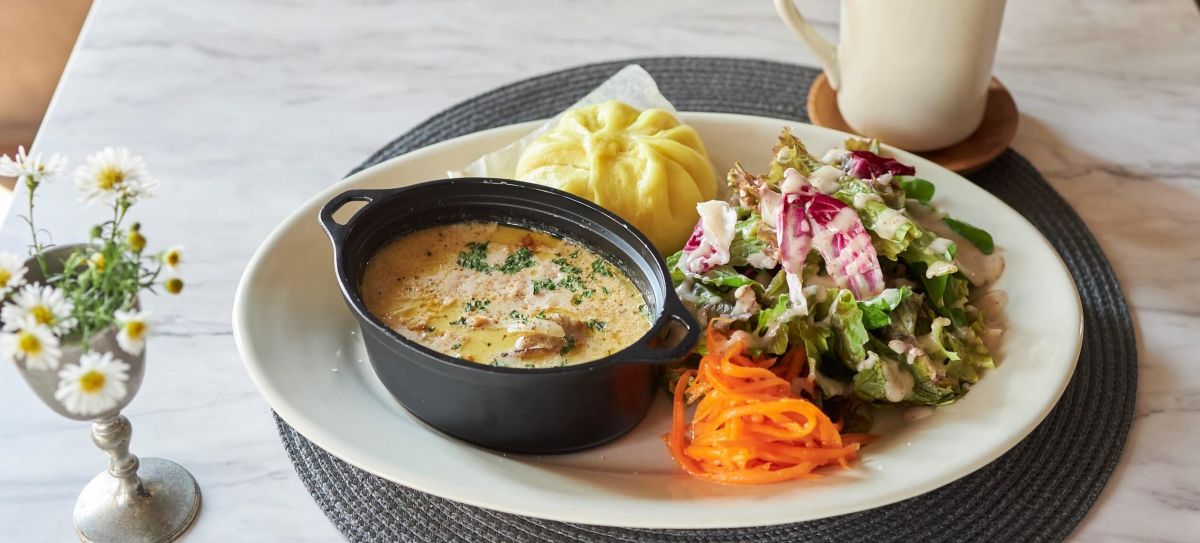 鎌倉さんぽのスタートは「エキゾチカ」のスープ&自家製中華まんのモーニングセットで!