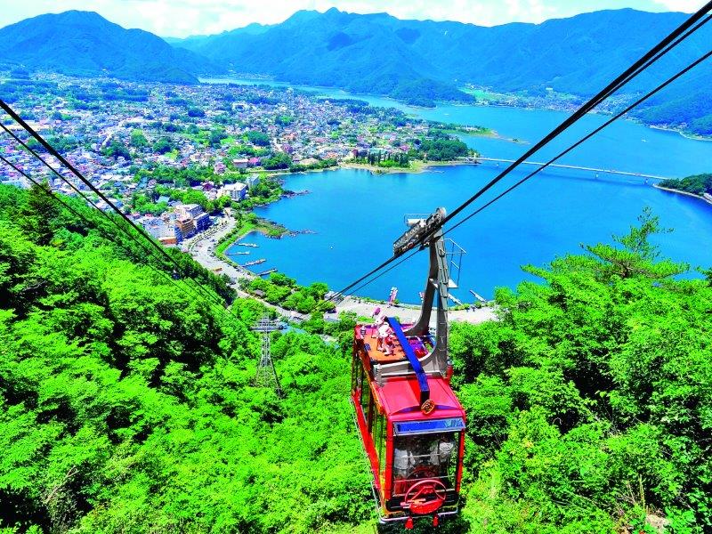 民話『かちかち山』の舞台といわれる天上山山頂へ上る「~河口湖~富士山パノラマロープウェイ」からは四季折々の風景を楽しめます。