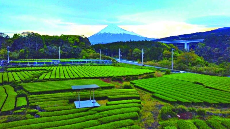 富士山と目の前に広がる茶畑 のどかな風景を独り占め