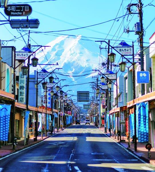 富士山に向かってまっすぐ伸びる国道139号、通称「富士みち」。沿道にはレトロな店構えの店舗が並び、昭和を思わせる看板や交錯する電線が映り込むのも味わい深いと、一躍人気のフォトスポットです。
