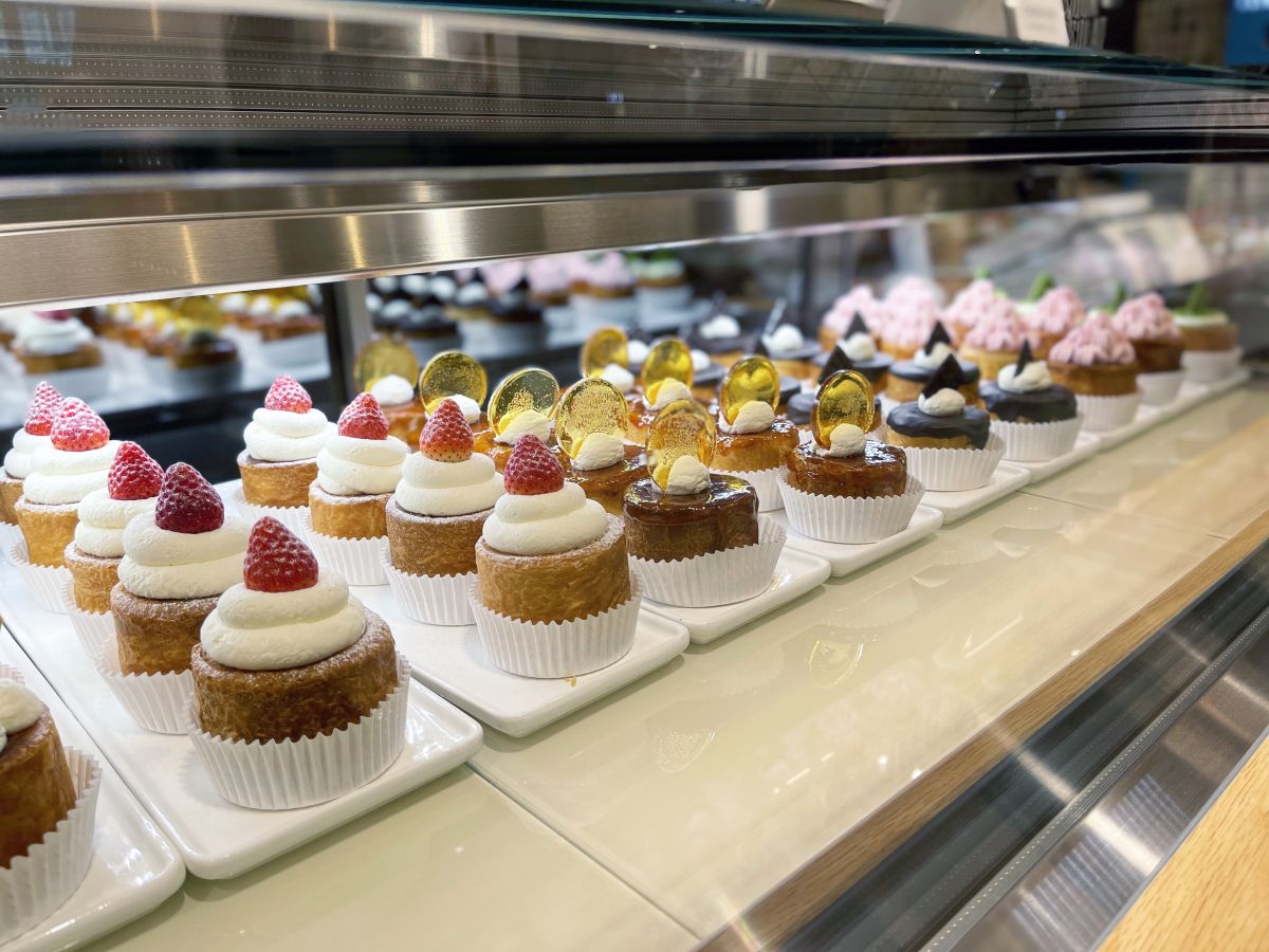ショーケースには、かわいらしいクロワッサンケーキがずらり。見ているだけでテンションが上がります。