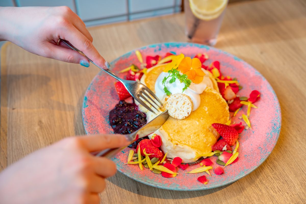 イチゴやベリーのコンポートなど、食材の味を引き立てるためにあえてパンケーキ生地の甘さは控えめにしているのも特徴。そのままでももちろんおいしいですが、フルーツや酸味のあるベリーパウダーと一緒に食べるのがおすすめです。軽い口当たりで、甘いものを普段食べない筆者も、ひと口またひと口と、あっという間にぺろりとひと皿平らげてしまいました!
