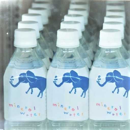 季節ごとにかわるメニューボードと、メインキャラクターの青い象が描かれたミネラルウォーター。このシンプルで可愛い青い象は、ファッションデザイナー・皆川明氏のデザインなんだとか。