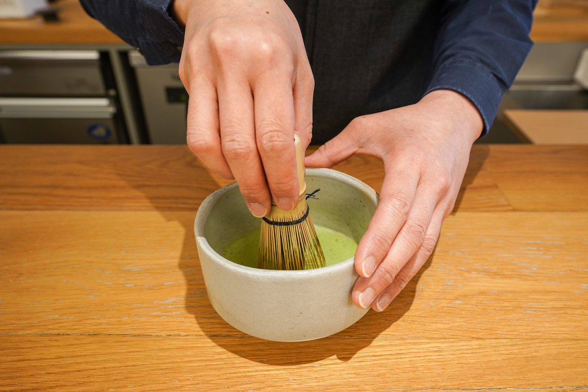 ウェルカムドリンクとして、目の前で抹茶を点てていただけます。