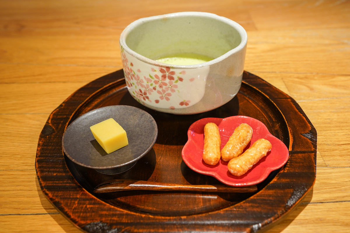 日本らしいウェルカムお抹茶とお茶菓子ですが、既に日常とは違う特別感があってワクワクします!