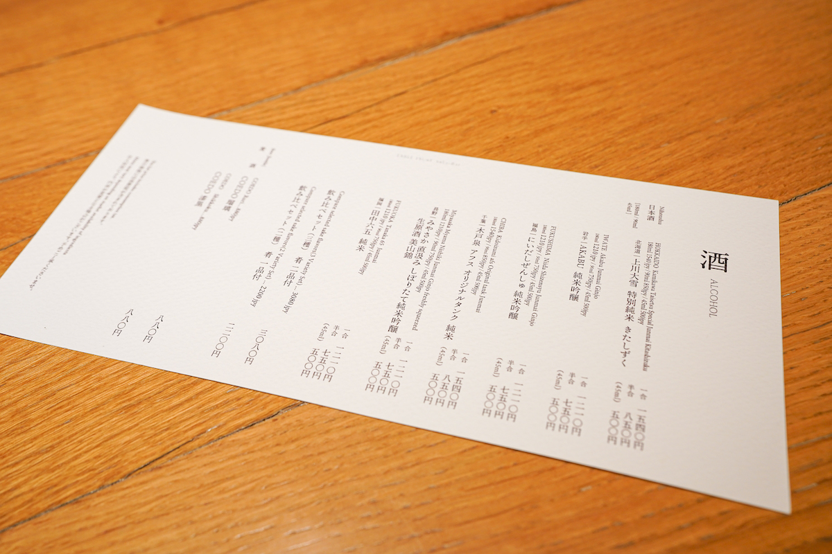 ウェルカムドリンクをいただいたSAKE-BARは時間によって色々なメニューを楽しめます。
