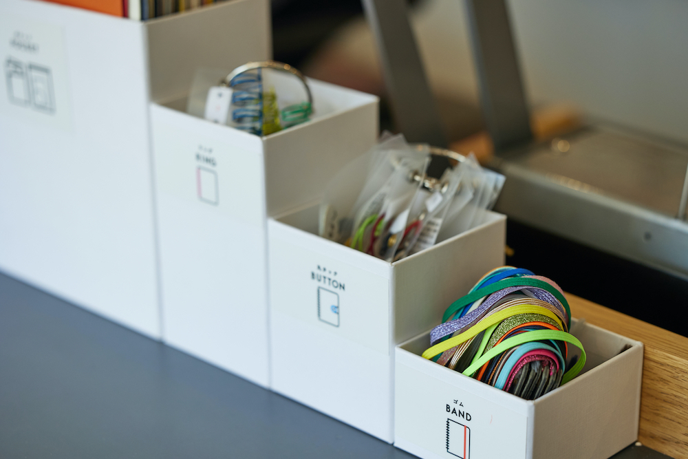 色とりどりの棚は圧巻。紙が丁寧に収納された光景を眺めているだけで、気分が上がってきます。早くノートが作りたい!