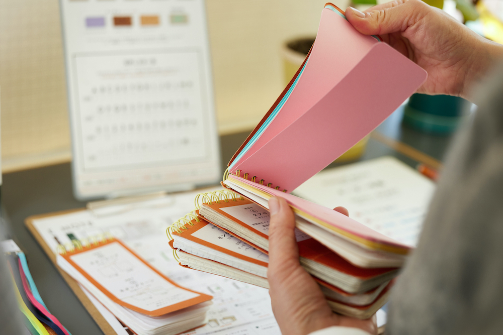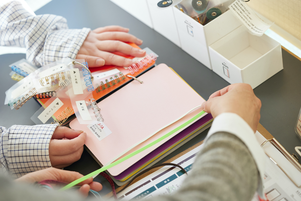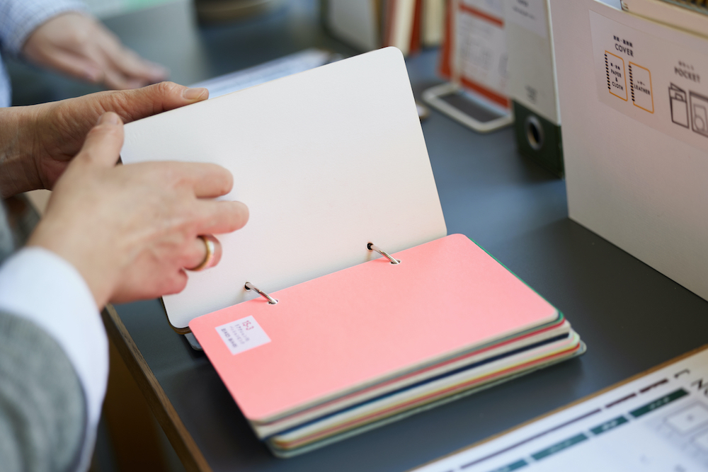 「用途や好みを教えていただければ、希望に合った形状をご提案いたします。あらかじめ、ざっくりとイメージを固めた上で来店されると、スムーズに作れますよ」と、スタッフの八木星璃さん。公式サイトのオーダーページ上でノート作りのシミュレーションができるので、事前に予習しておくのもアリです。