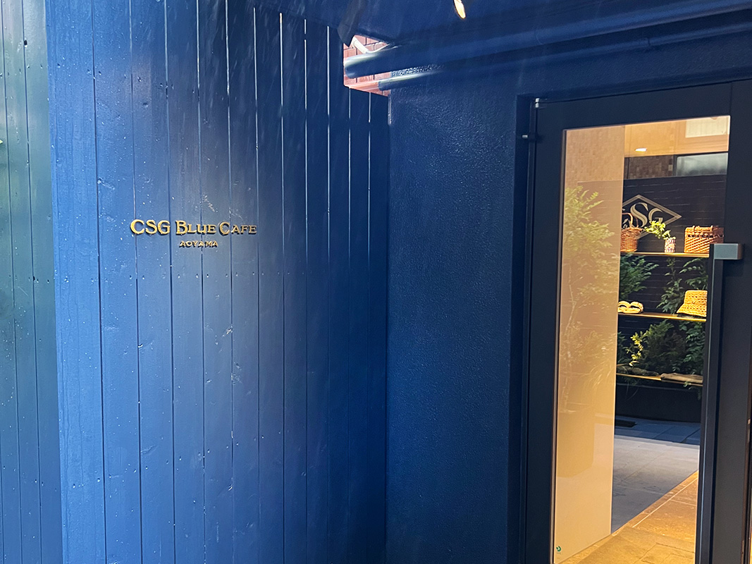 表参道駅から徒歩約4分。「CSG BLUE CAFE AOYAMA」は、アパレルブランド「CURENSOLOGY」の旗艦店に併設されています。
