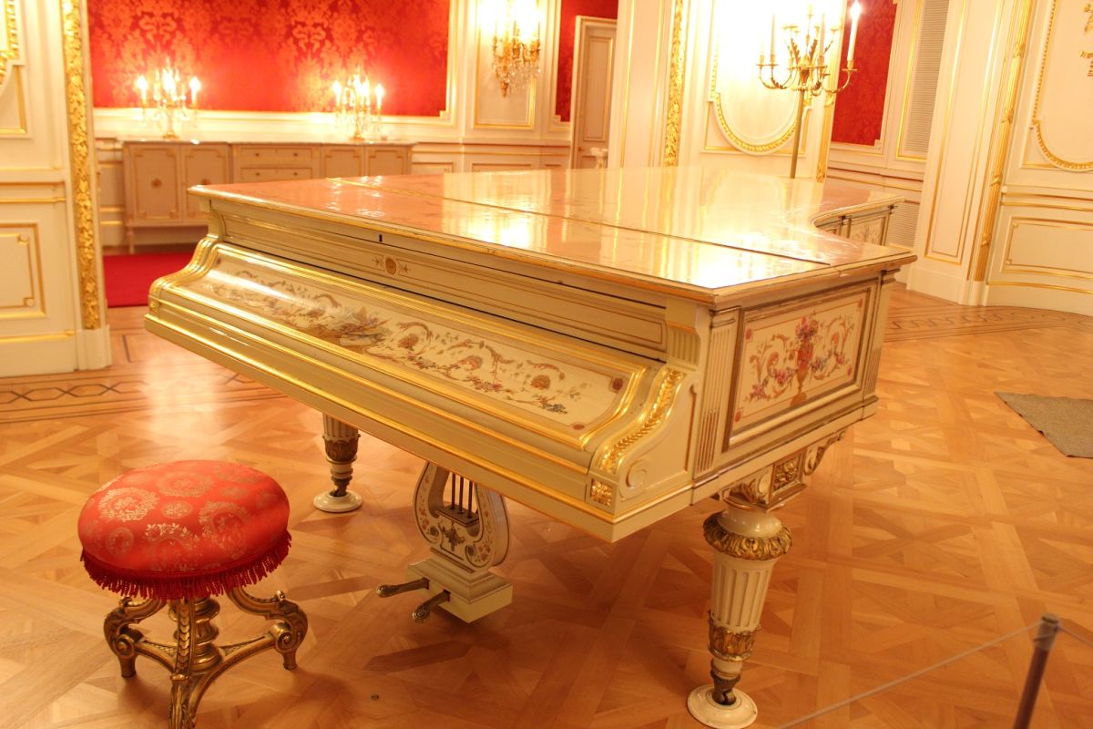 オーケストラボックスの前には今でも高い人気を誇るエラールピアノがありますが、こちらは菊の紋章が入った特別製。2024年6月には演奏会が開かれるそうなので、気になる人は定期的に公式サイトをチェックしてみて。