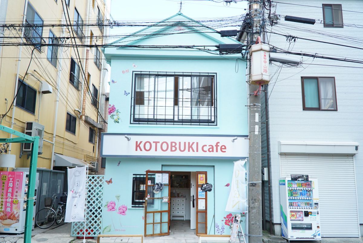横浜中華街の奥にひっそりとたたずむ隠れ家カフェ「KOTOBUKI cafe(ことぶき かふぇ)」。中華街の大通りから1本入った奥の方へ歩いていくとスカイブルーのキュートなお店が見えてきます。
