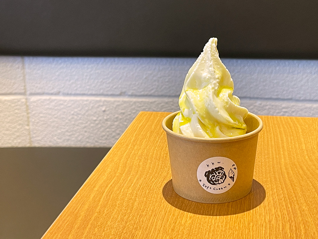 オーナー夫妻がソフトクリーム好きなことや、ワンちゃんと一緒に楽しめるようなものを提供したいという想いから、「KKW.」のソフトクリームはすべて無添加。
