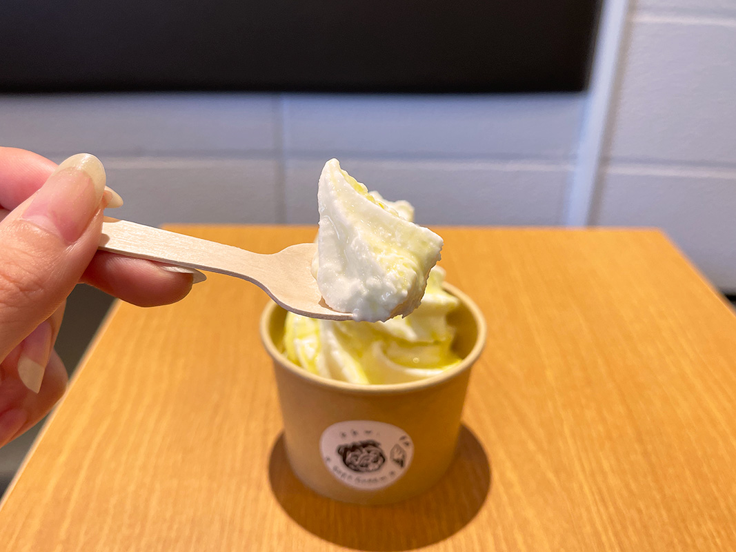 ソフトクリームなのに、チーズを食べているかのような不思議な感覚です。濃厚で甘じょっぱいテイストがクセになります。
