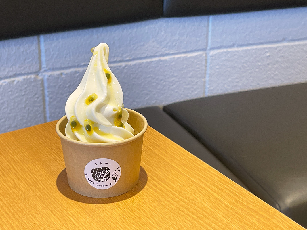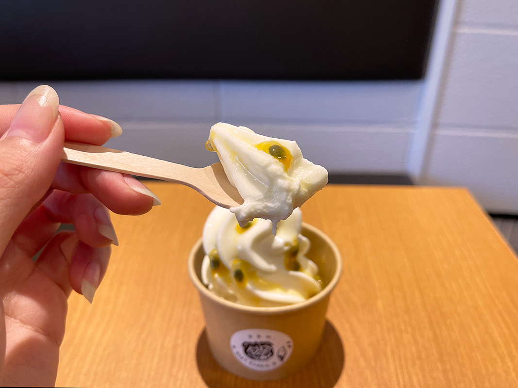 甘酸っぱいパッションフルーツとソフトクリームは相性抜群。種のプチプチ感もたまりません。これからの暑い時期にぴったりの、トロピカルな味わいです。