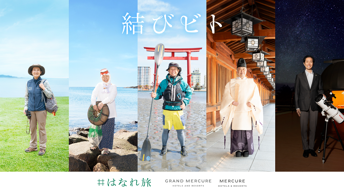 都市や観光中心地を「母屋」に、その先のあまり知られていない地域を「離れ」とすると、「はなれ」といえる地域に立つグランドメルキュールとメルキュールホテル。その地の利を生かし、実はあまり知られていない絶景や地元限定の食や伝統文化、地域の人とのつながりなど、そこでしかできない体験を楽しむ旅が「はなれ旅」です。