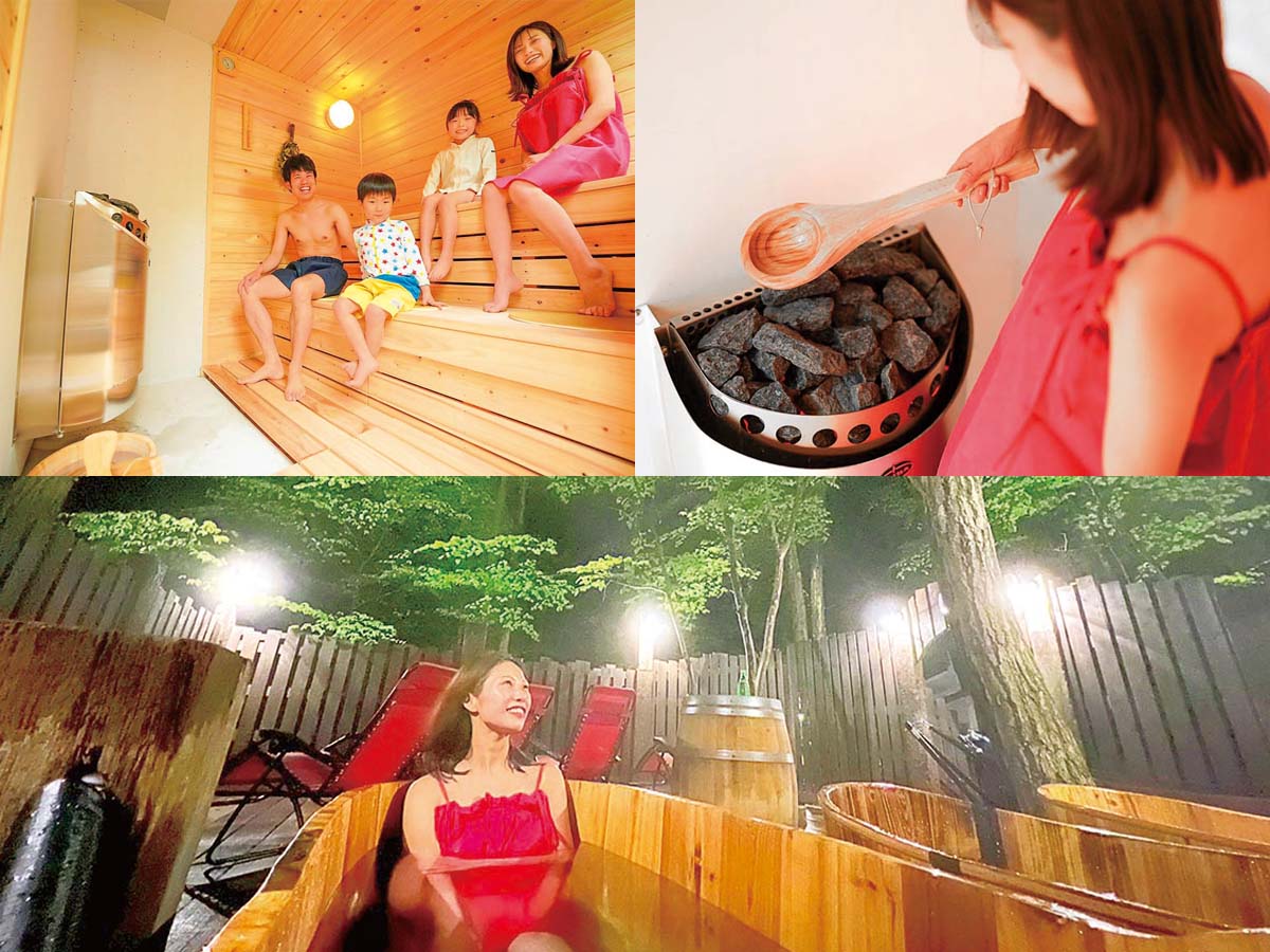 森の中で“ととのう”体験ができる貸切りタイプの日帰りスパ施設(料金1枠80分、1人6600円)です。昼は森と空の爽快感が気持ちよく、夜はライトアップされた森を楽しめます。最大6人が楽しめるヒノキの香るフィンランド式サウナでは、ロウリュもOK。利用者はジャイロライドの全プランが1000円引きになります。