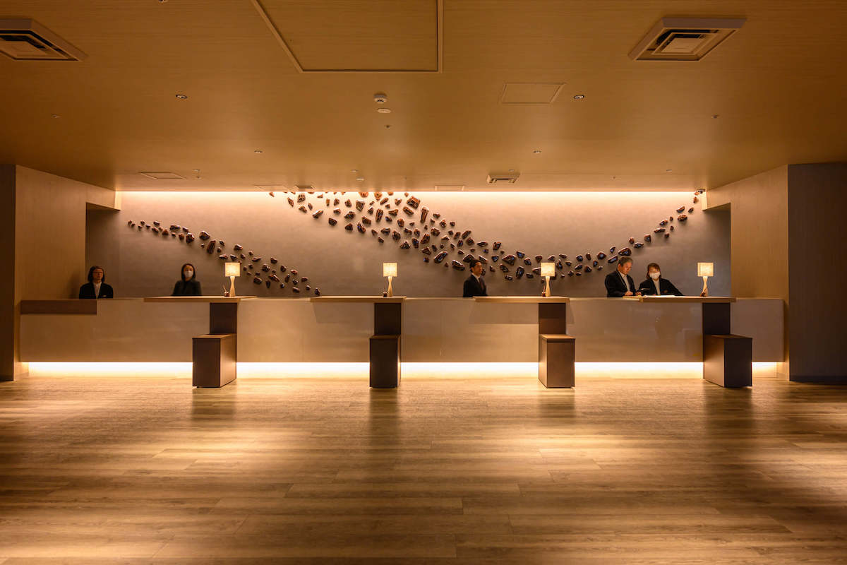 ホテルに到着して、まずはチェックイン!ロビーに足を踏み入れるとふわりと柚子とヒノキの香りが漂います。