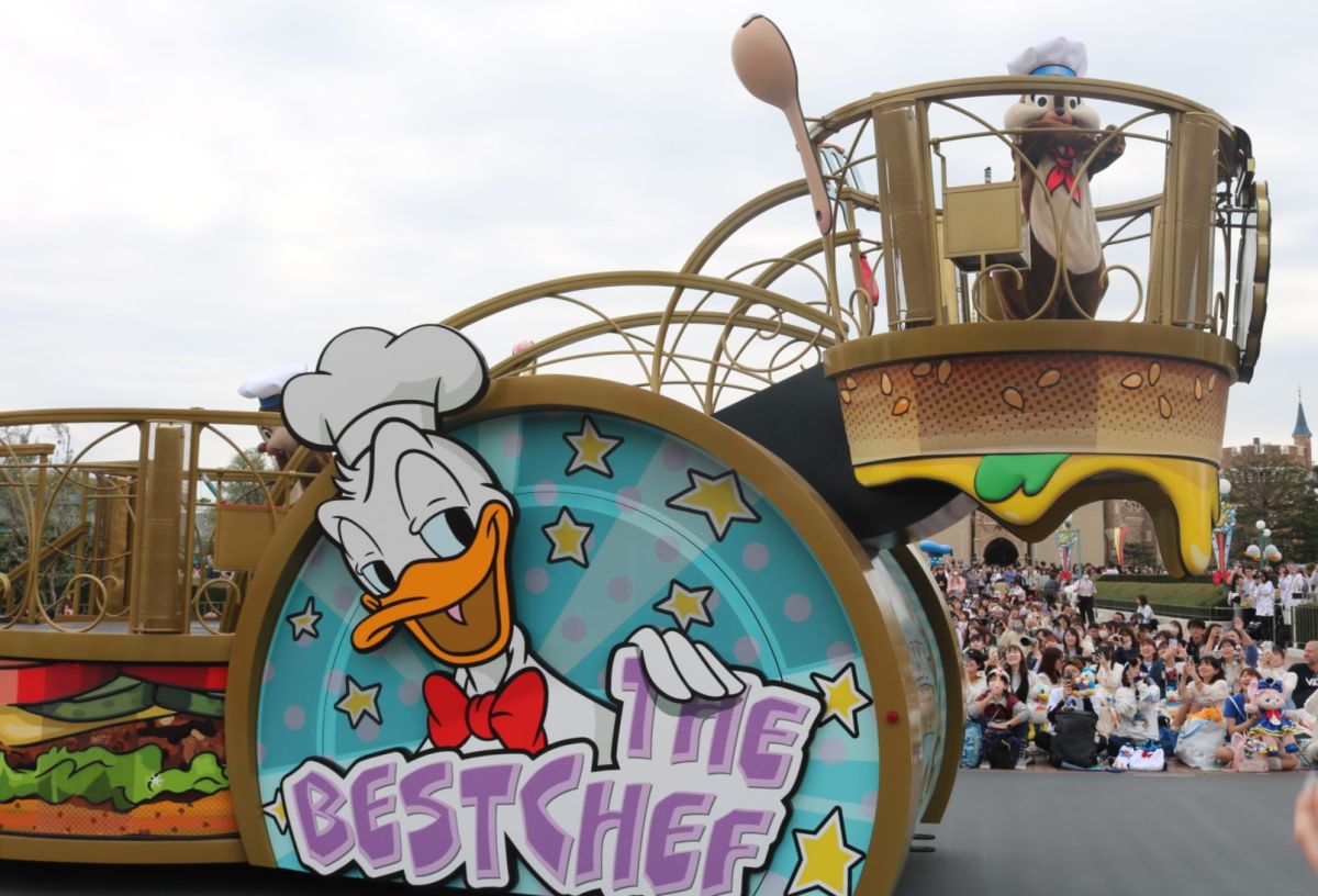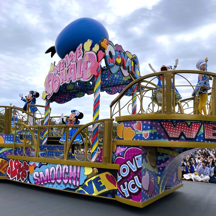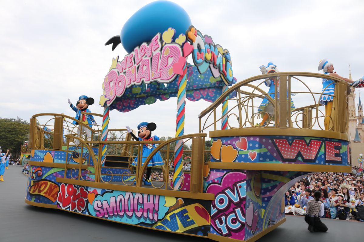 ファンタジーランドを出発して、プラザをめぐり、トゥーンタウンで繰り広げられるドナルド愛溢れるパレードは必見♪