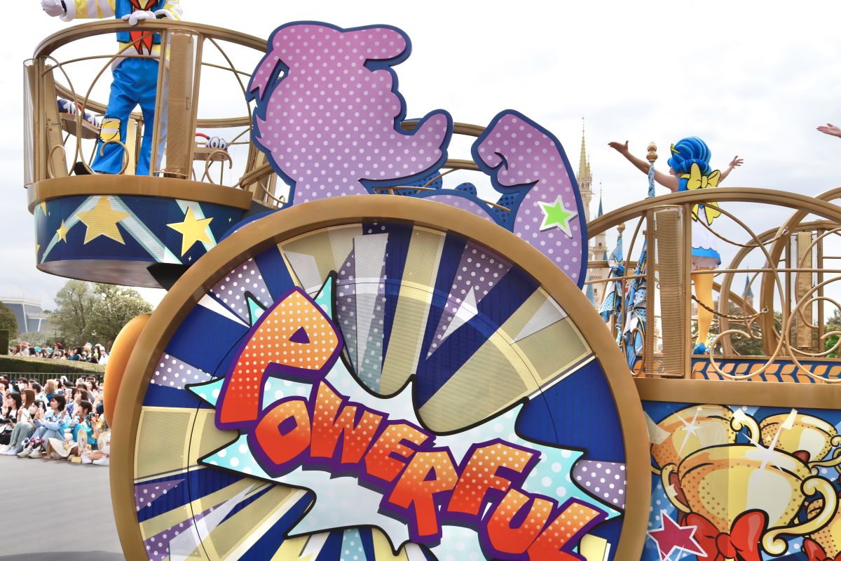 今回のパレードはフロートにも注目。アメコミ風のデザインが施されていて、ハチャメチャなドナルドの雰囲気にぴったり。
