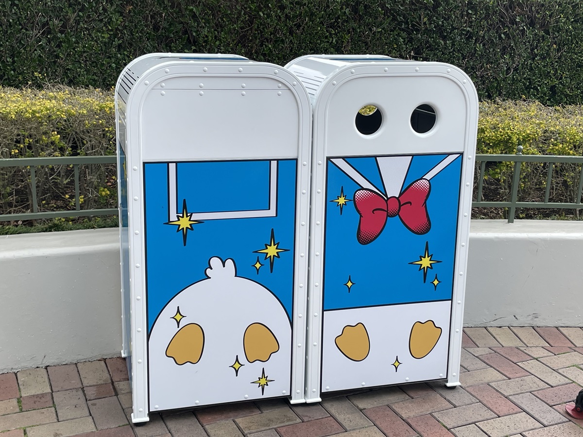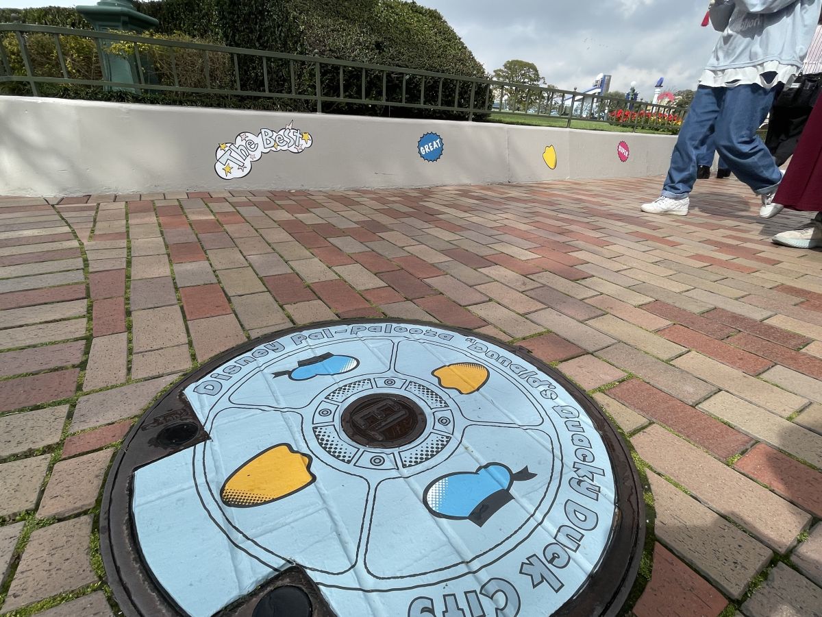 プラザ内のトラッシュカン(ゴミ箱)、マンホールなどもデザインが変わっていますよ。