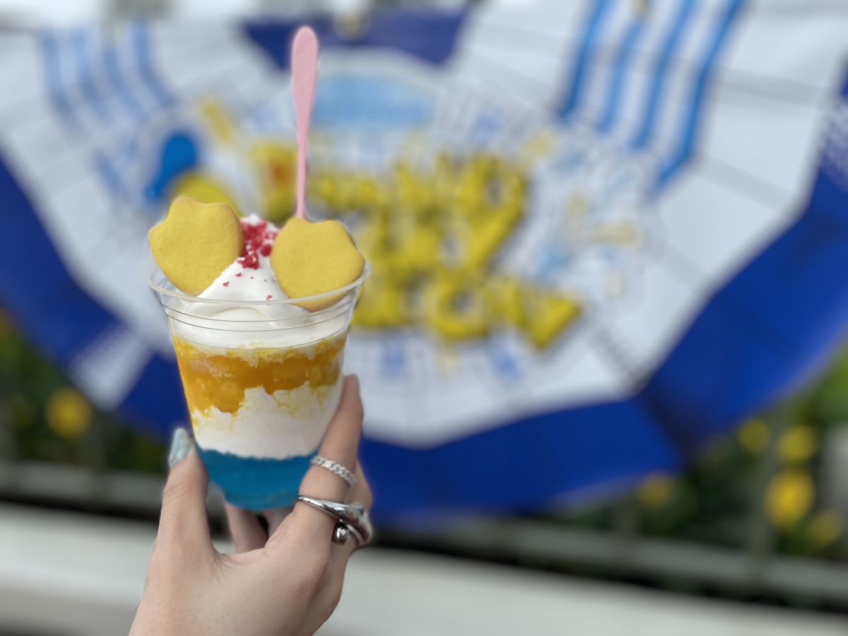 甘さ控えめのチーズホイップの下にはダイスカットされたマンゴー、一番下のブルーゼリーはパイナップル味と食べ進めるごとに味わいが変わって楽しいサンデーです。トッピングのドナルドの足跡型のクッキーでチーズクリームをすくって食べるのが美味でした♪ お試しあれ。