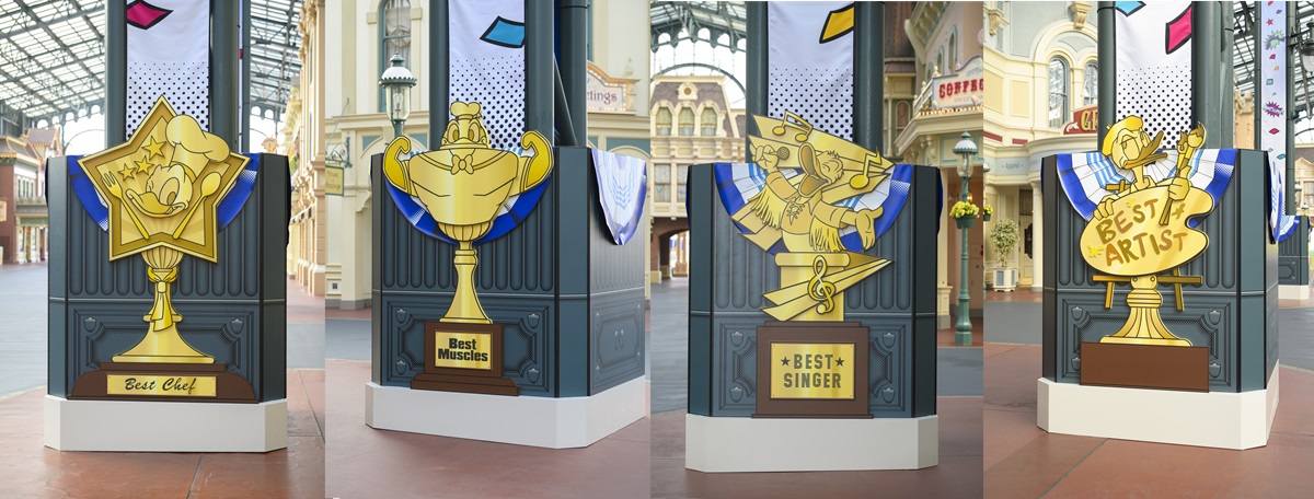 周りにある4本の柱にもドナルドの功績をたたえるトロフィーのデコレーションもチェック。