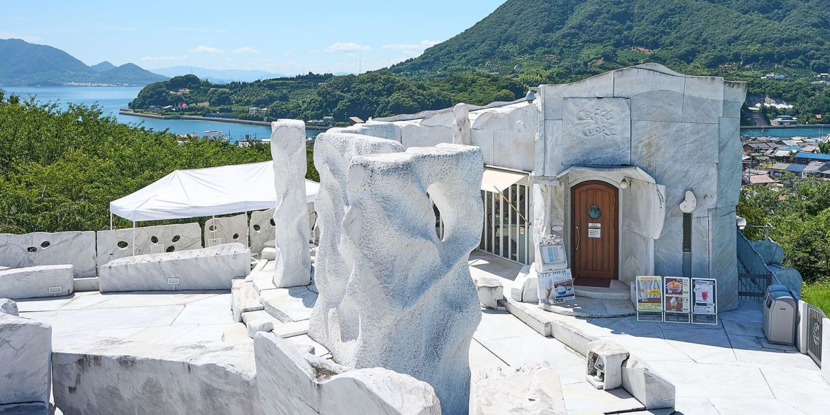 しまなみ海道の生口島にある寺院・耕三寺(こうさんじ)。広大な境内の高台に、大理石の彫刻作品が立ち並ぶフォトジェニックな白亜の庭園「未来心の丘」が広がります。庭園内にたたずむ「カフェ クオーレ」は、散策途中の休憩にぴったり。店内では、オリジナルドリンクと一緒に、どこか懐かしい瀬戸田の風景を楽しむことができます。