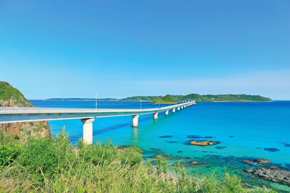 山口県西部、青い海と緑の島の間を抜ける大橋の景色が、CMや映画で脚光を浴び、今や日本屈指の定番絶景スポットに。映画みたいな憧れシーラインで開放感あふれるドライブを楽しもう!