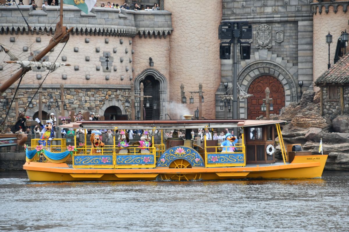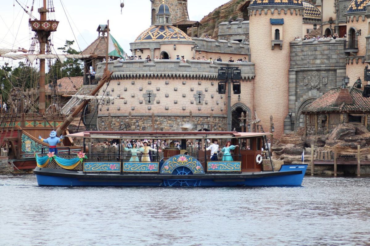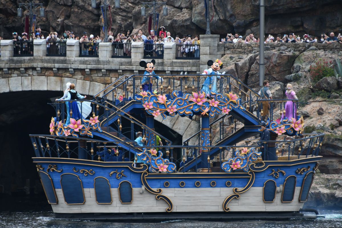 フィナーレにはドナルド、チップ&デール、プルート、グーフィーのほか、すでにテーマポートがあるアリエル&エリック、アラジン&ジャスミン、ジーニーも2隻の船に乗って登場。ファンタジースプリングスのオープンを喜んでいるようでした♪