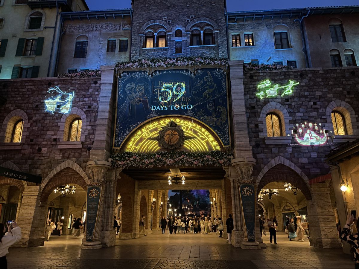 ファンタジースプリングスがグランドオープンする6月6日(木)までをカウントダウンするデコレーションがミラコスタ通りに登場しています。