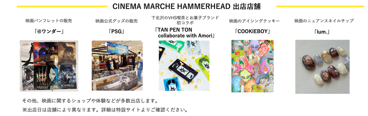 また、横浜ハンマーヘッドでは、2024年5⽉2⽇(⽊)〜5⽉6⽇(⽉・祝)の期間中、映画に関連したグッズやアパレルアイテムが揃うマルシェが登場!ほかにも、映画のポスター展の開催や、映画のなかの名曲が期間限定で館内BGMになったりするそう。各会場の映画上映前に足を運べば、映画の世界観を高めることができそうです。