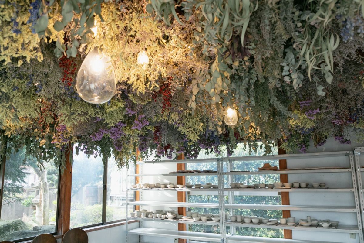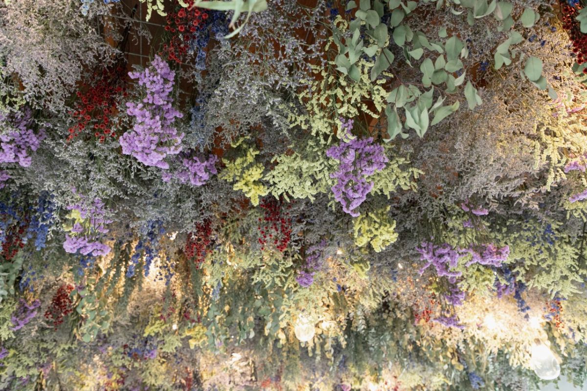 店内に入ると、見てください!香り豊かなドライフラワーが天井一面に広がっています。