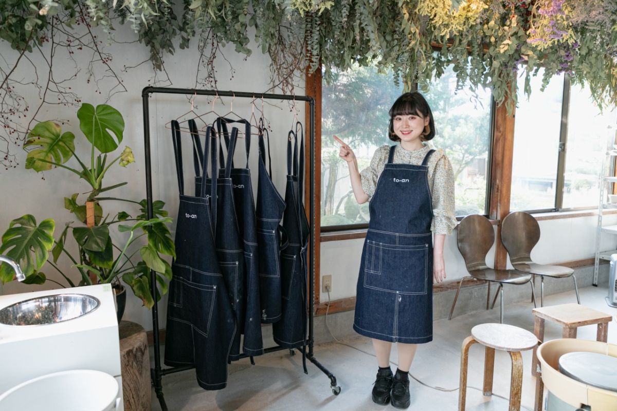 体験は予約制なので、事前に予約をしたうえでお店に入り、受付を済ませます。そしてエプロンを装着!これでもう準備はバッチリです。