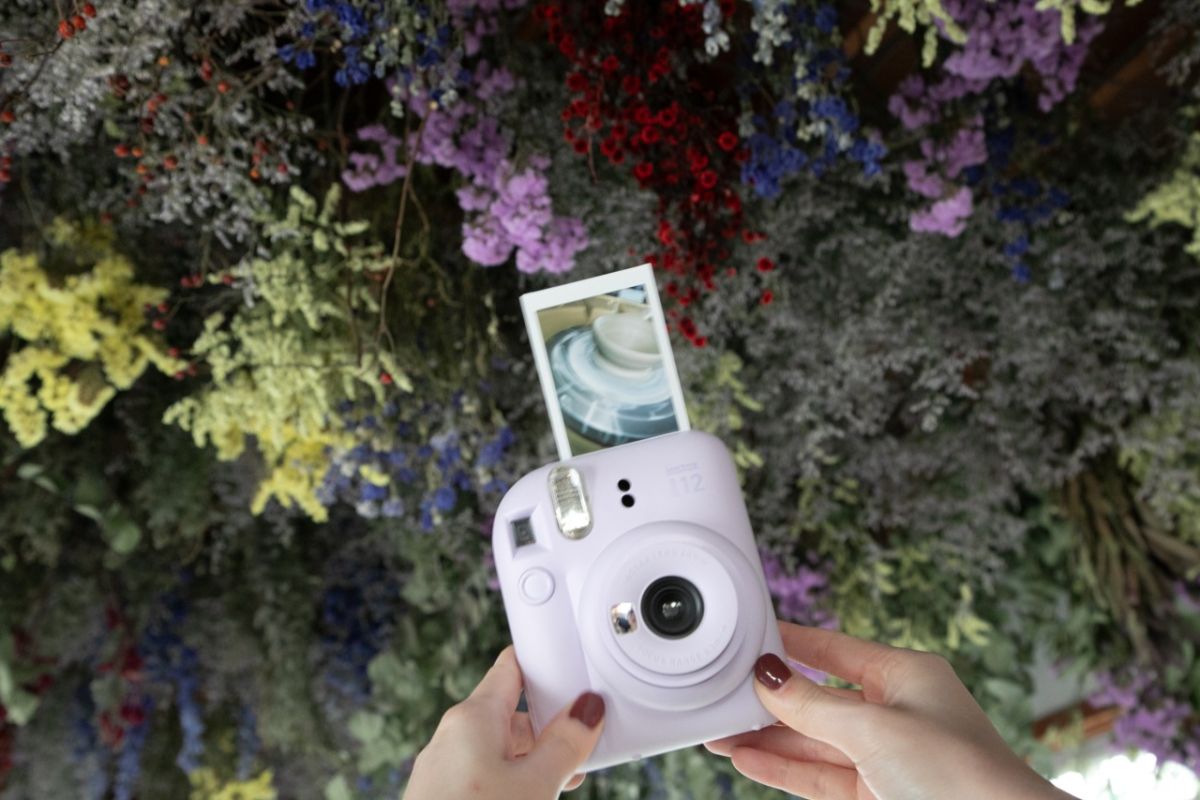 チェキ本体にとれたフィルムをはさんでドライフラワーとも撮ってみました、かわいい!