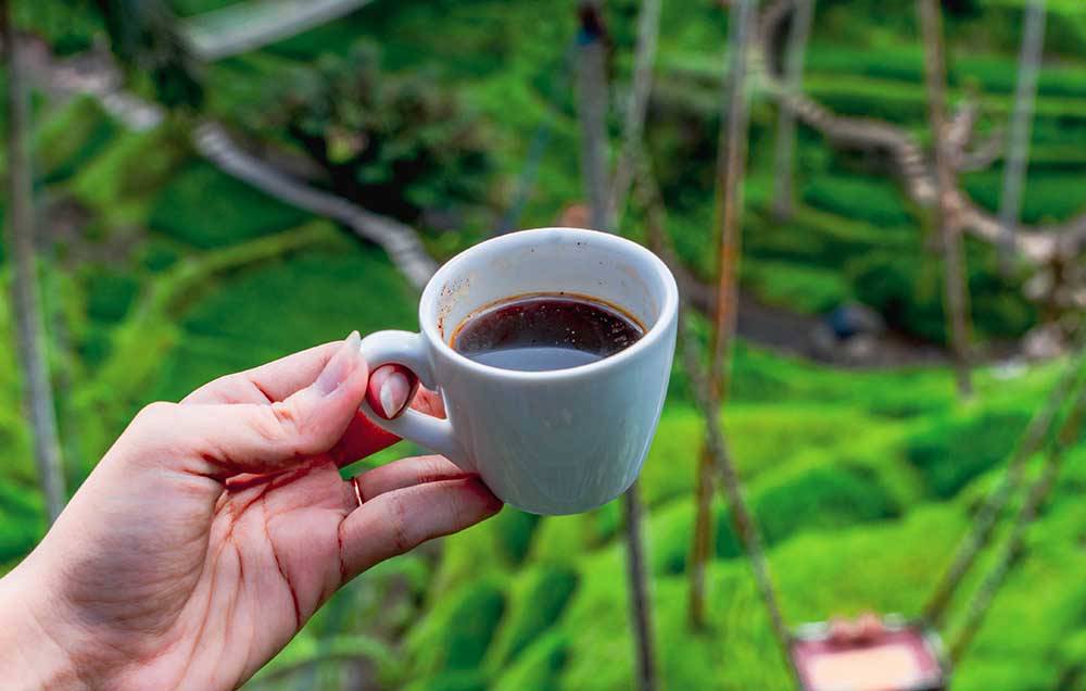 緑の棚田を見渡しながらいただく濃厚なコーヒーで、旅の疲れが癒されること間違いなし!スリル満点のジャングル・ブランコを体験する前に、心を落ち着かせておくのもいいかもしれませんね!