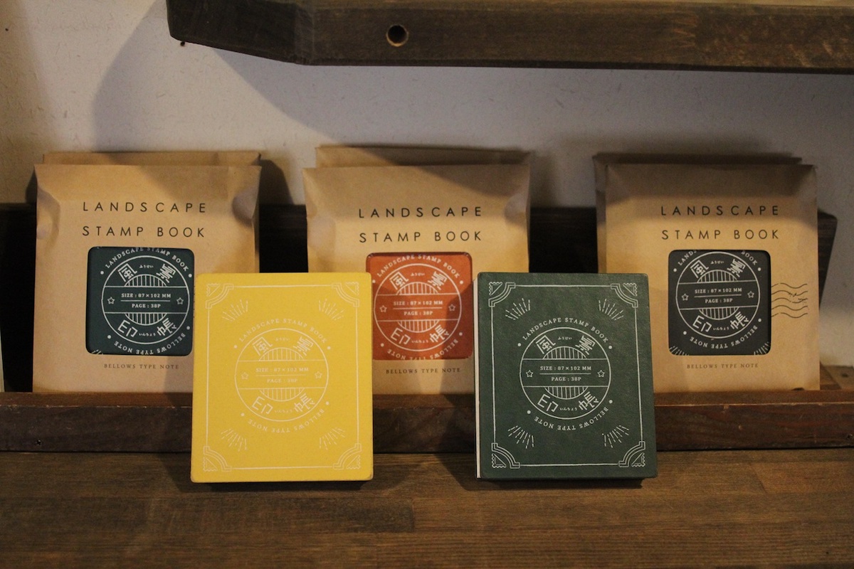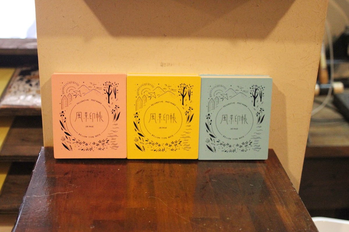 ピンク、イエロー、ブルーのやさしい色合いがとってもかわいい「風景印帳」もあります。