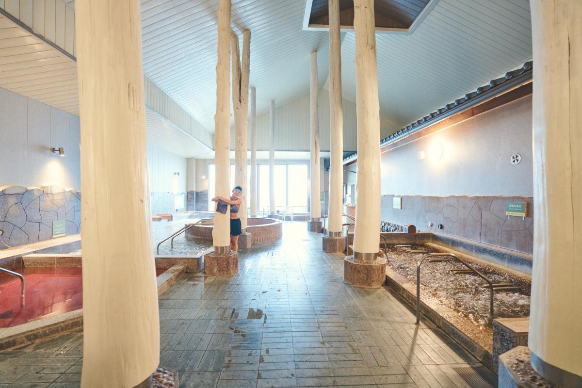 浴室内にはお風呂が3つ、サウナ2つ、塩サウナ1つ、水風呂3つ。外にでると、露天風呂に、ウィスキングもできるハーブスチ-ムサウナ。