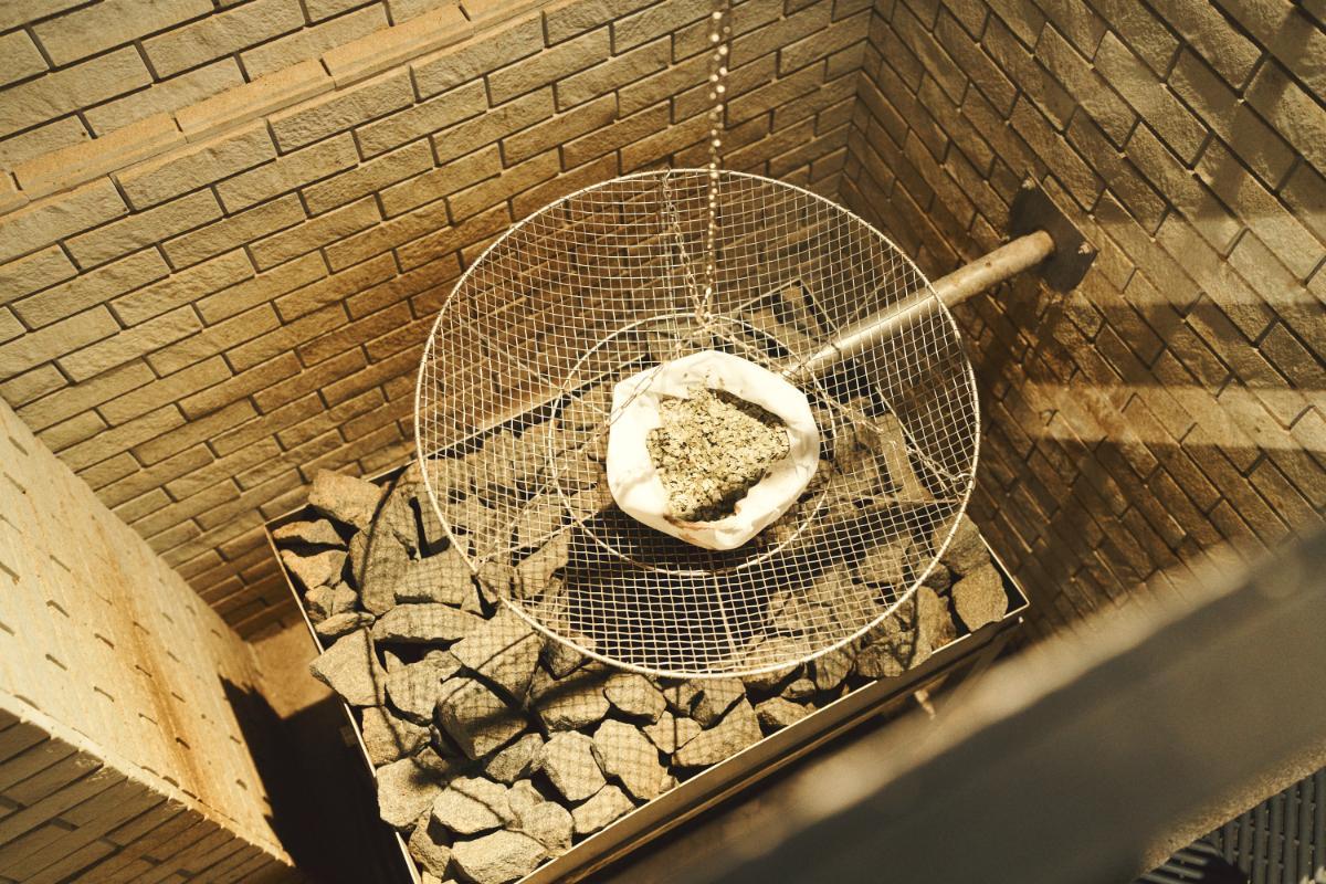ストーブの上にハーブが置かれていて、その上からセルフロウリュができます。オーガニックのハーブの香りがふわふわ漂って、やわらかでやさしい空間。