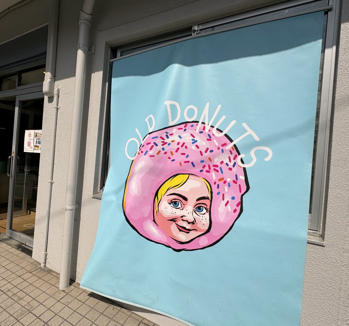 ドーナツを被った!? キュートなキャラクター“Dキャシー”が描かれたタペストリーが目印です。