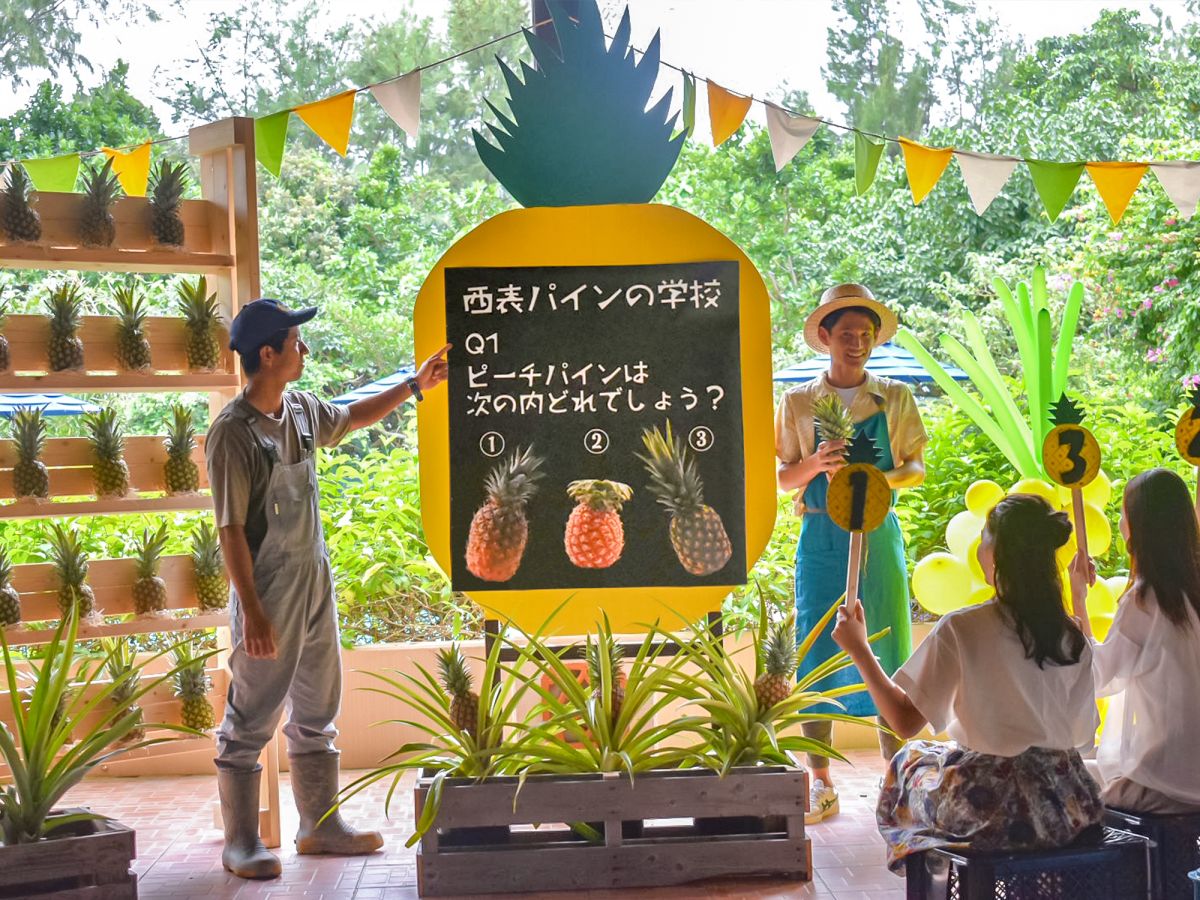 ピーチパインをよりいっそう楽しめるのが「西表島パインの学校」。西表島のパインがなぜおいしいのか、どんな歴史があるのかなど、実際にパイン農家に行き、レクチャーを受けたホテルスタッフが教えてくれます。産地農家だからこそ知るピーチパインの秘密やピーチパインのことをクイズ形式などで楽しく知ることができますよ。