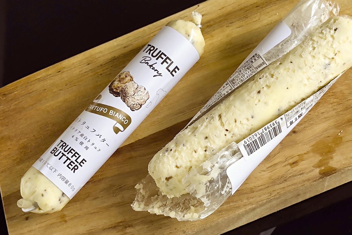 「トリュフベーカリー 白トリュフバター」には、イタリア産白トリュフを製品中4%使用して、バターは「トリュフベーカリー」の塩パンと同じ北海道産バターが使われています。