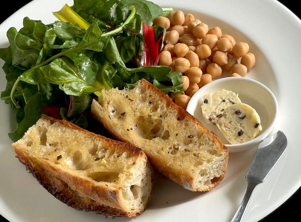 食事用のパンで味わうなら白トリュフバターをぬって、トースターでこんがり焼いてどうぞ。バターがパンの中まで染み込んで、パン全体がトリュフ風味に。食べるときに“追い白トリュフバター”すれば、さらにリッチに。サラダと合わせれば立派なワンプレートです。
