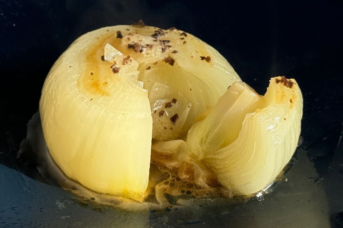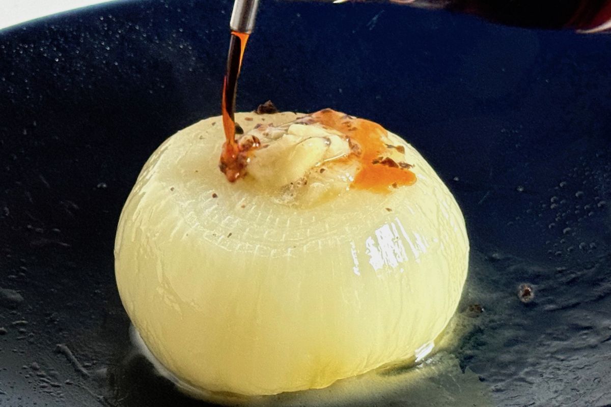 温かいうちに、お好みで“追い白トリュフバター”をどうぞ。熱々とろとろの玉ねぎの甘さと、トリュフの香り、バターのコクが絶妙にマッチ。超簡単なのに立派な一品料理の完成です!