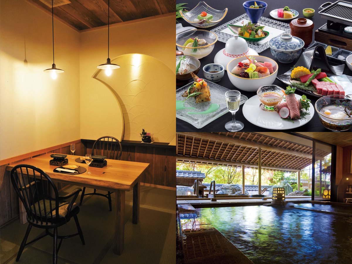 わずか24の客室に対して70名ものおもてなしスタッフがおり、日本旅館らしい細かなさりげないおもてなしで安らげます。部屋か個室料亭のプライベート空間で堪能できる食事は、地元野菜や飛騨牛など四季折々の会席料理。客室は純和風の部屋、スイートルーム、半露天風呂付きなど多彩です。新たに誕生したスイートルームでは、さらに上質な滞在を楽しめます。