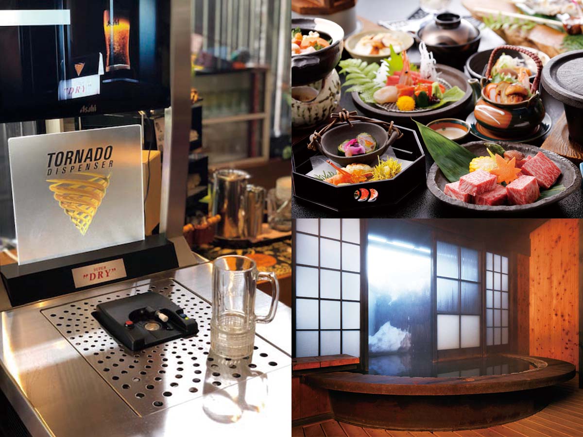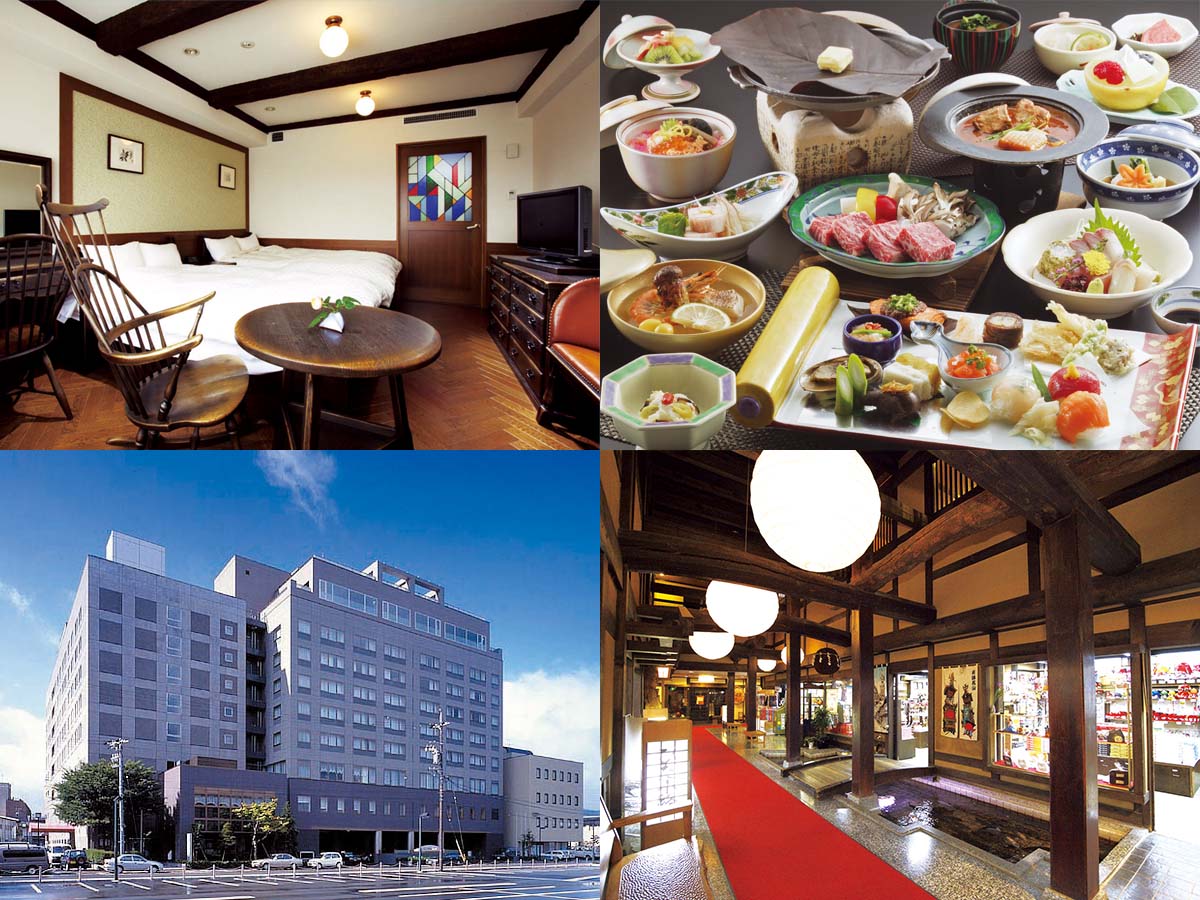 飛騨高山駅前の好立地で、高山市内の観光スポットもすべて徒歩圏内。館内はバリアフリー設計が多用され、どの部屋も飛騨を感じられます。天望大浴場や露天風呂、屋上シルクバス、ミストサウナ、床が畳敷きの和風大浴場と温泉設備も充実。食事は飛騨の新鮮な素材を使いながらも会席、フレンチ、中華と好みに合わせて楽しめます。