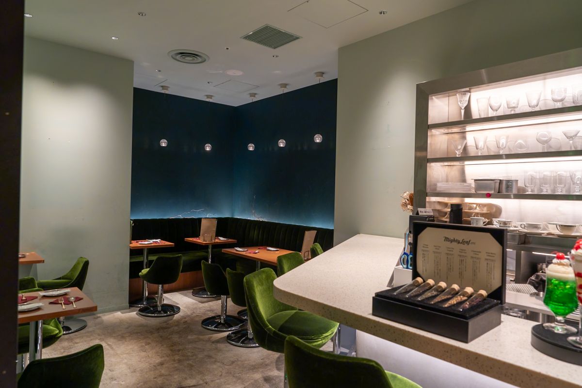 ちなみに「Nood e」では、お店の隣にパフェのみを食べるイートインスペースを設置。ホテルのラウンジのようなラグジュアリーな空間で、落ち着いてパフェを堪能することができます。餃子を食べた後に移動してパフェを食べるもよし、はじめからパフェのみの利用をするのもよしです。もちろん、餃子やラーメンを提供している店内でパフェを食べるのも問題ありません。