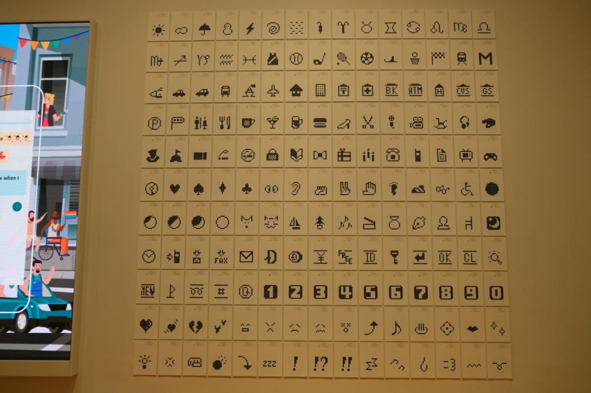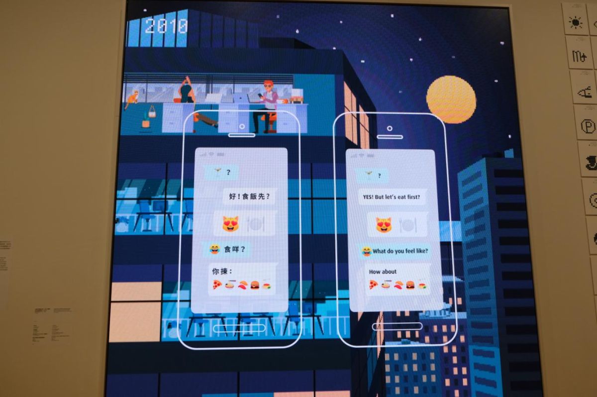 入ってすぐにあるのは絵文字の展示。動画でその変遷が表現されている作品です。