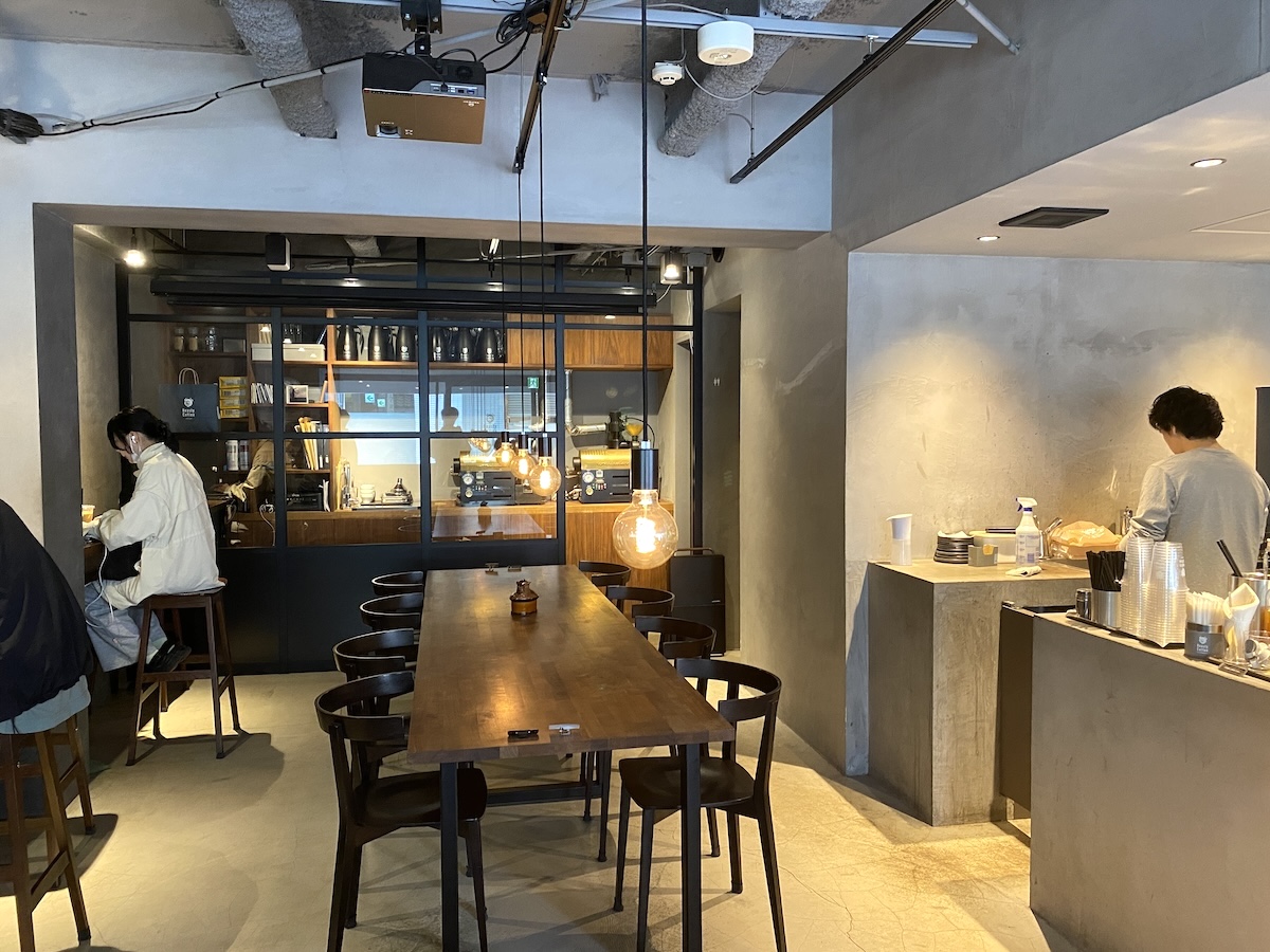 店内にはグレーとネイビーで統一された落ち着きのある空間が広がっています。「BeastyCoffee cafe laboratory」は、デザイン家電メーカーの「amadana」が手掛けるブランド「BeastyCoffe by amadana」のフラッグシップショップ。おしゃれな雰囲気が漂っているのも納得です!