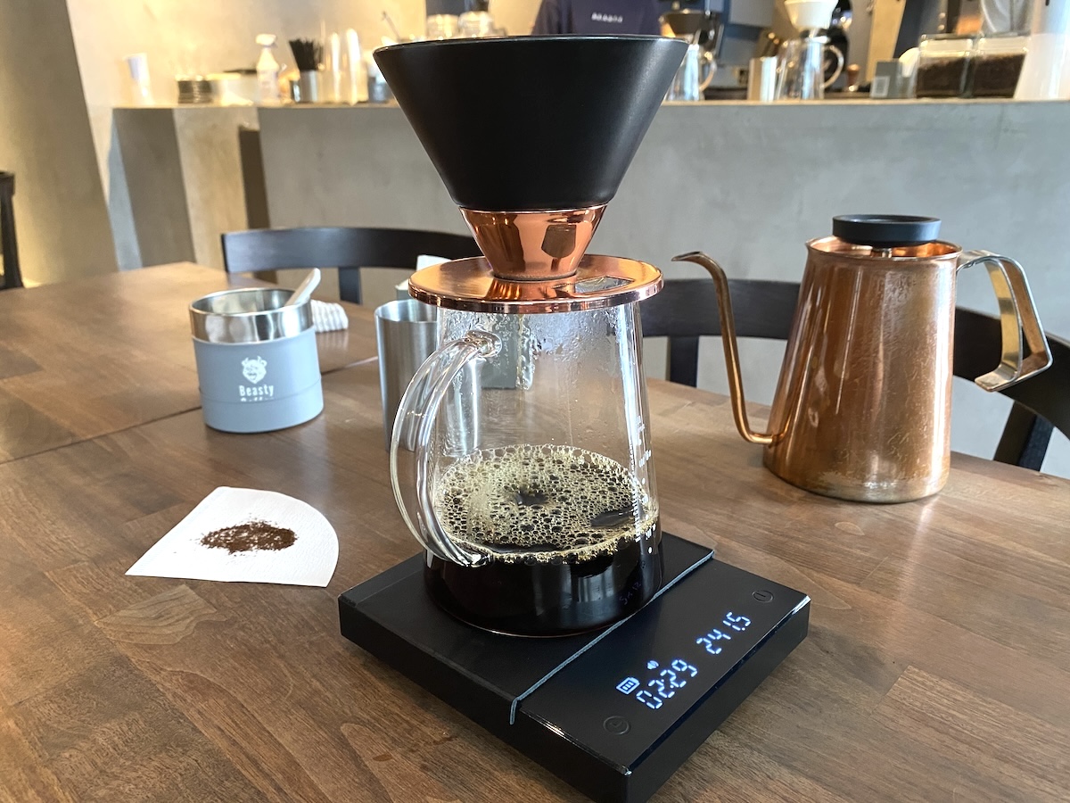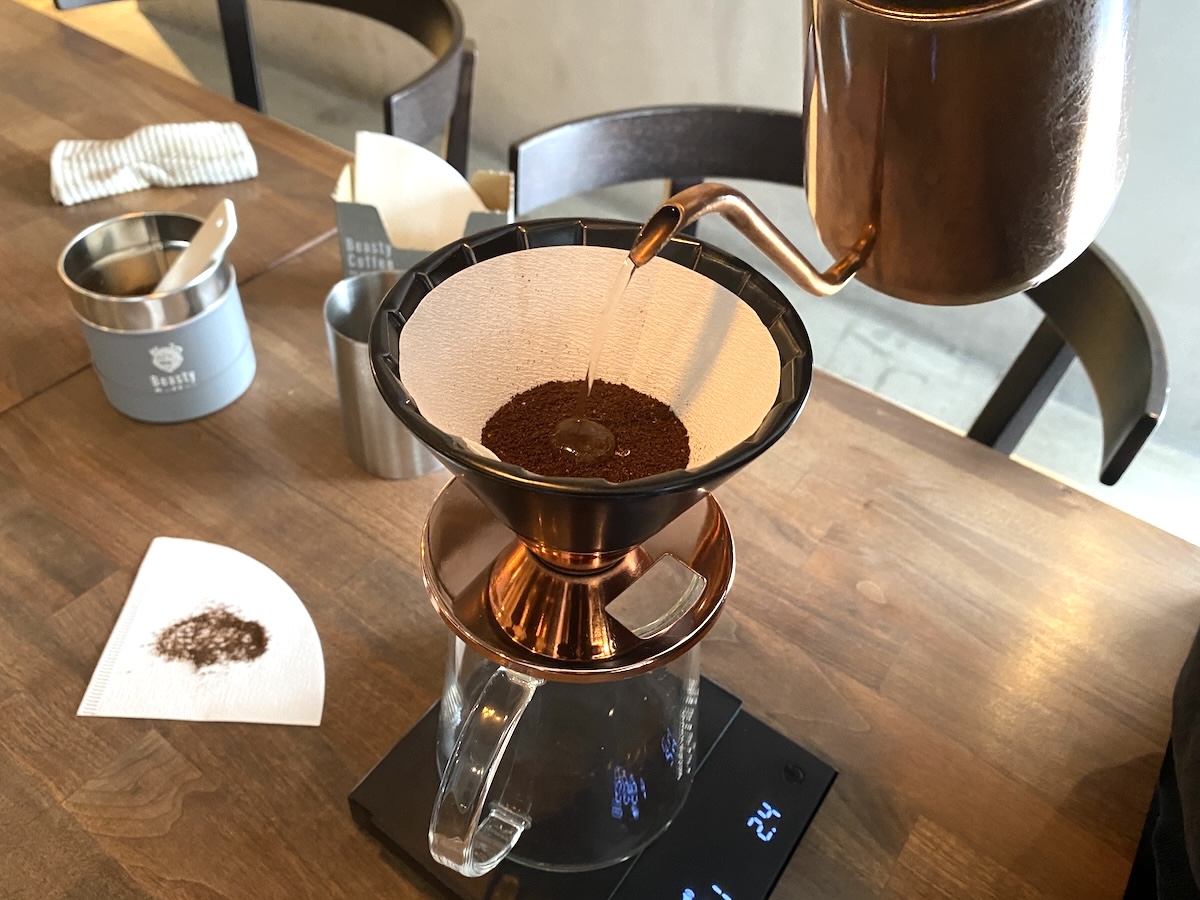 基本の入れ方を学んだ後はおうちで湯量を調節したり、抽出時間を変えてみたりして自分好みの味わいに調節する楽しみも。初心者でも安心して受けられる「BeastyCoffee cafe laboratory」のワークショップ。ワークショップでコーヒーに関する基礎知識を身につけることができるので、ここから沼ってしまう人も多いそうです。