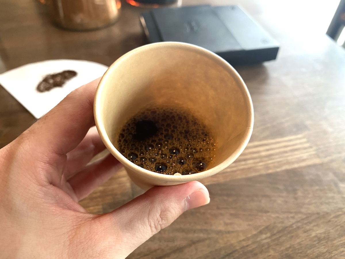 そして完成したコーヒーを飲んでみると、余計な苦味のないすっきりとした味わいでした。2回ともしっかりマンツーマンで教えてくれるので、短い時間でもハンドドリップが上達できるのがうれしいですね。